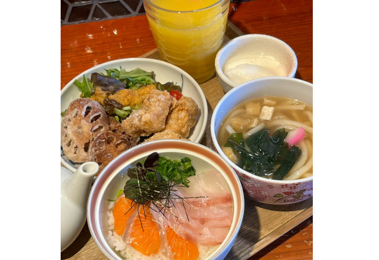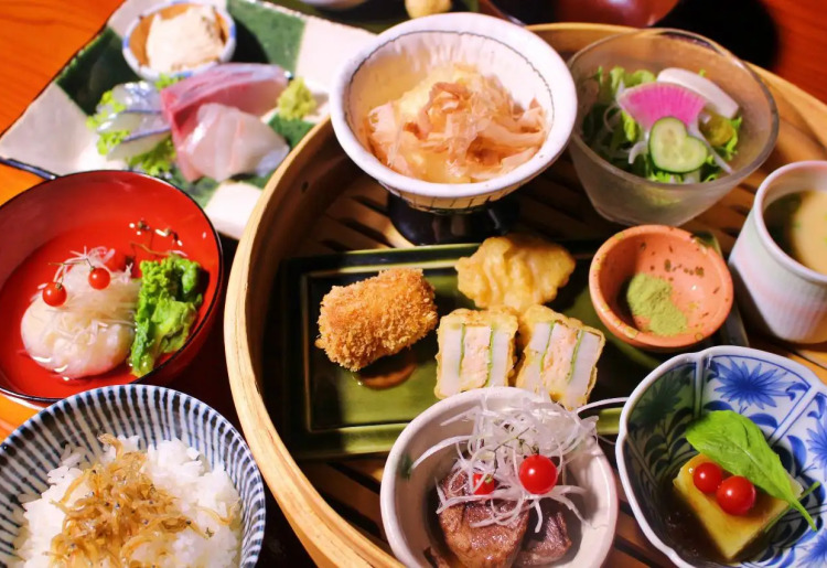 当店では旬食材をふんだんに使用し、目と舌で味わえる創作和食をご提供しております。お昼は「彩り 四季御膳」などの旬食材を少しずつ楽しめる御膳を、夜には「海老蓮根はさみ揚げ」などの多彩な一品料理を。季節の移ろいを感じられるお料理をじっくりと味わってください。