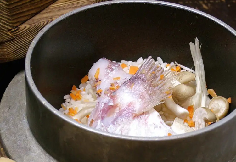 1釜で約2人前の量になります。内容はその時期の旬の食材で作りますので当日ご確認ください。(本ズワイガニ・うなぎ・松茸・たけのこ・桜エビ・ホタルイカ等)
