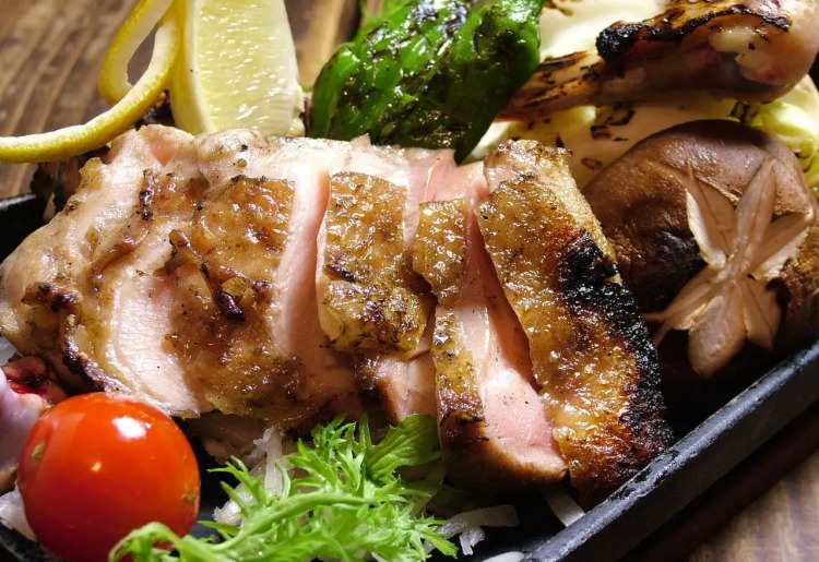 通常のブロイラーは45日間・地鶏は120日間・通常の親鳥は750日間の飼育期間ですが、この媛かしわ鶏は450日間ストレスのかからない環境で放し飼いにて育てられているためとても健康な鶏です。噛めば噛むほどに旨味が溢れてきます。