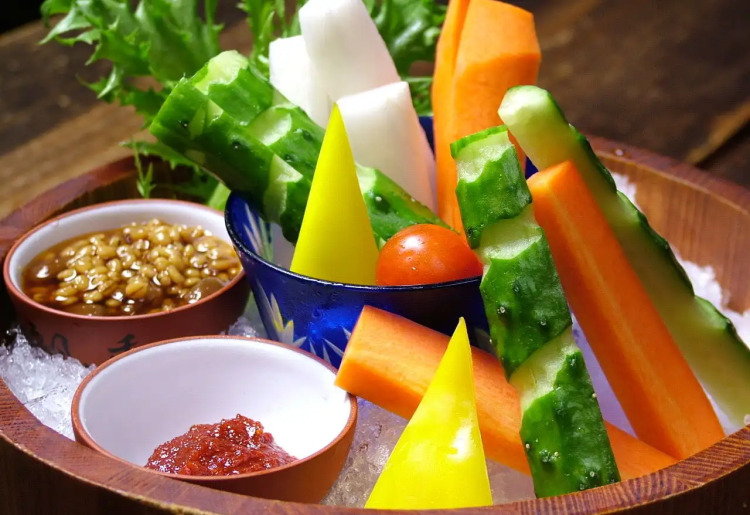 愛媛県産のきゅうりに金山寺わさび味噌をつけてお召し上がりください。